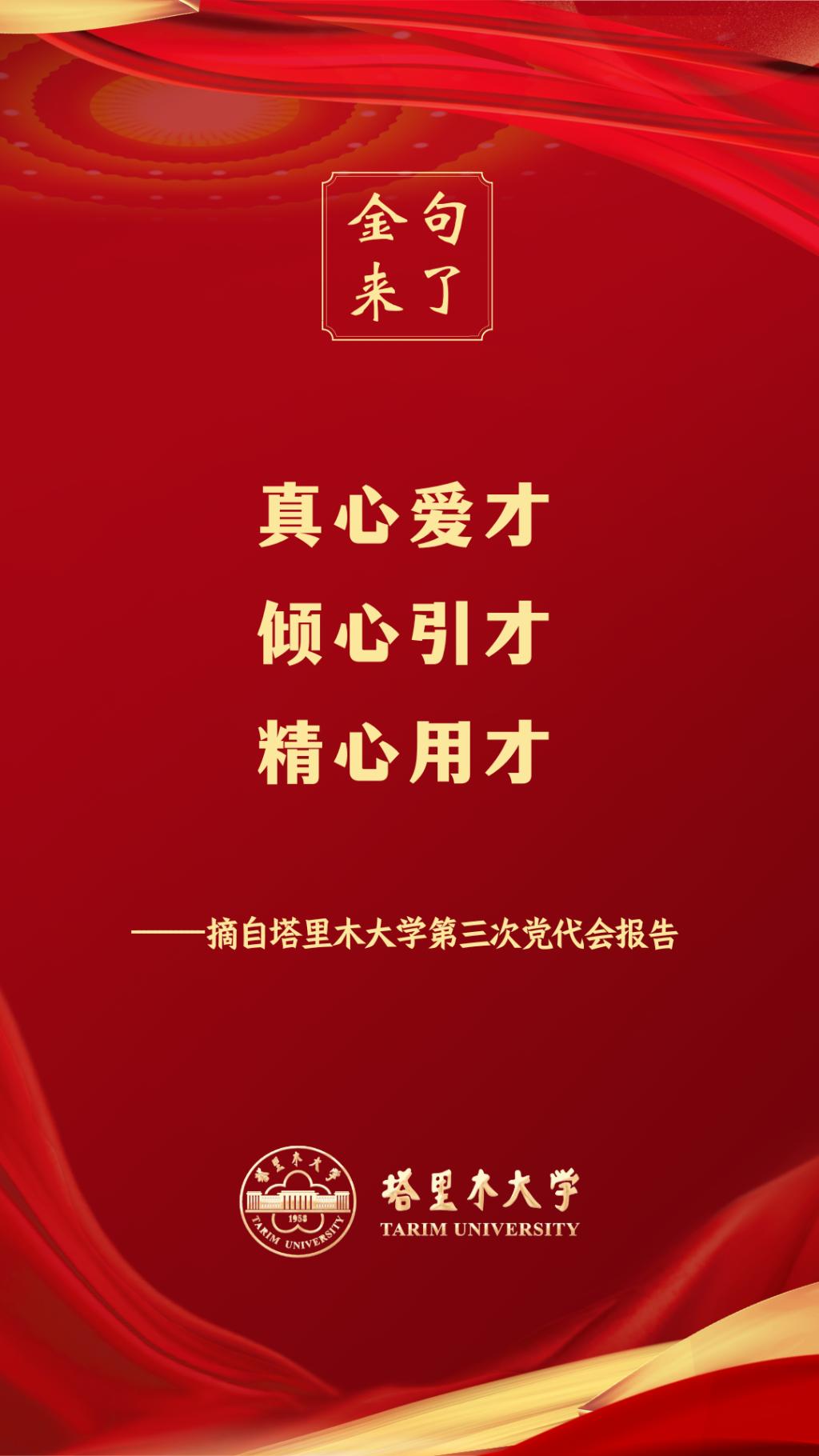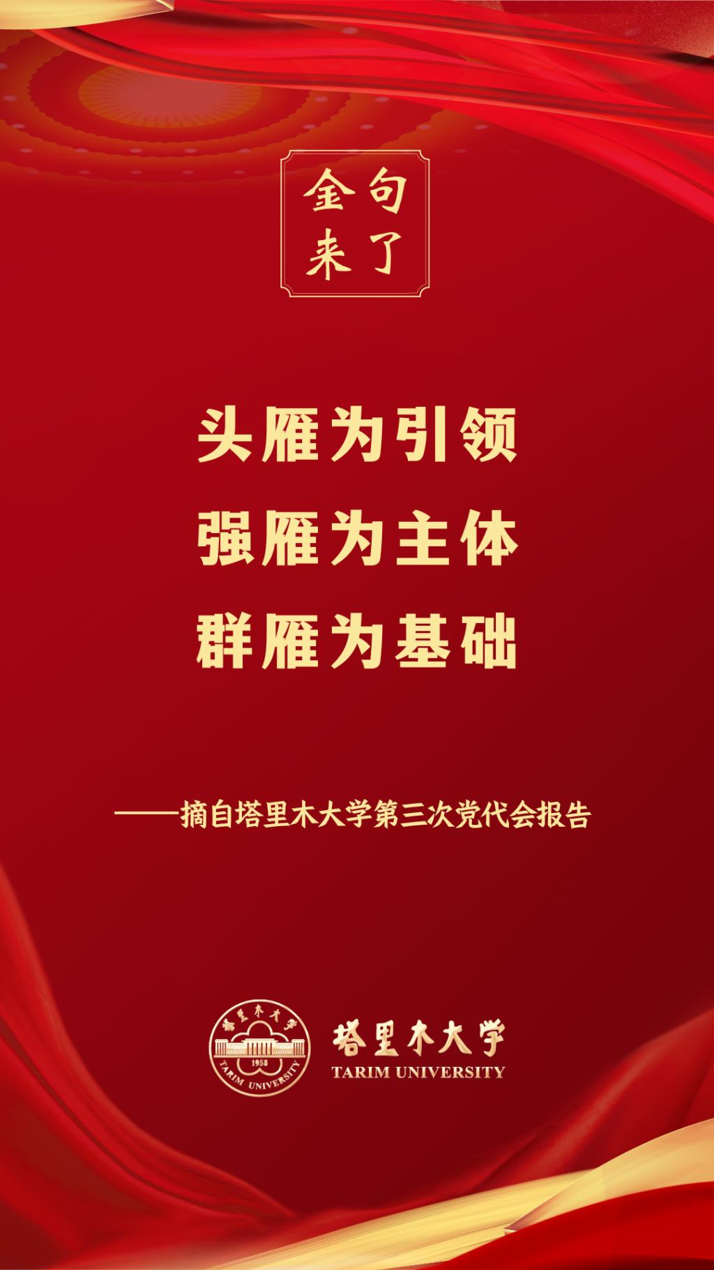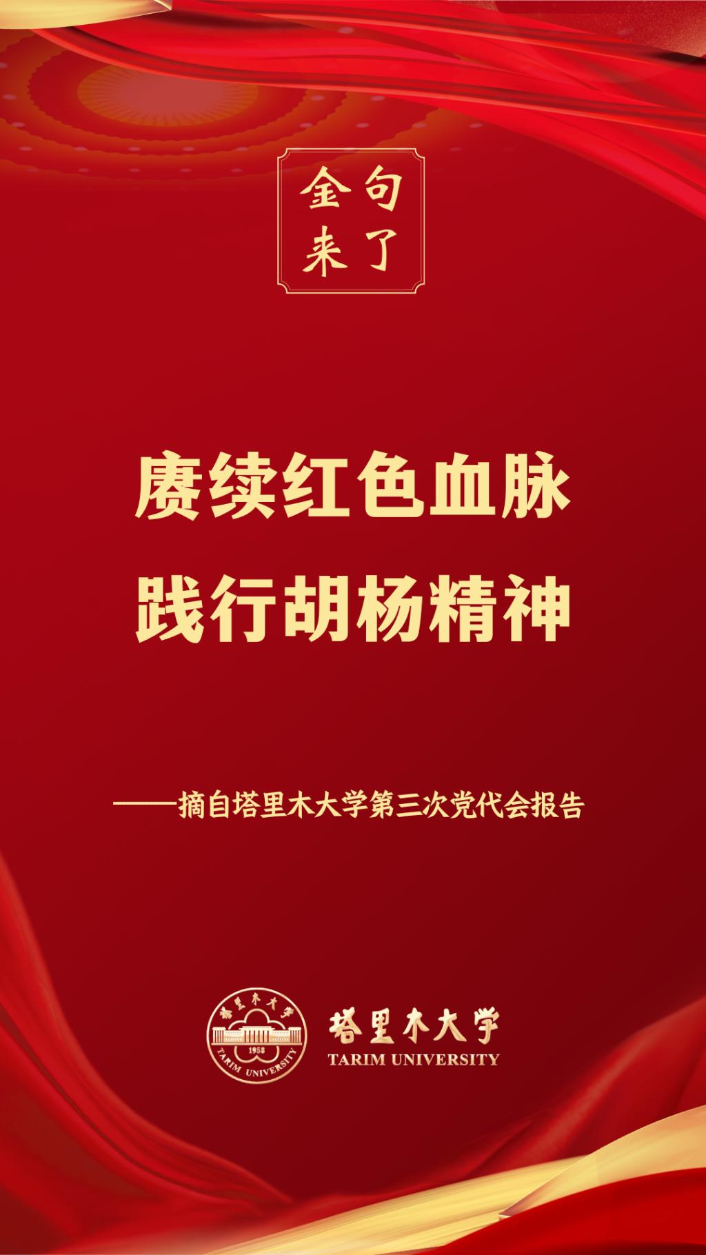 3月10日,中國共產(chǎn)黨塔里木大學(xué)第三次黨員代表大會勝利開幕。黨委書記張愛萍代表中國共產(chǎn)黨塔里木大學(xué)第二屆委員會作了題為《用胡楊精神育人 為興疆固邊服務(wù) 為加快建設(shè)兵團(tuán)特點(diǎn)南疆特色一流大學(xué)而團(tuán)結(jié)奮斗》的報告,現(xiàn)將報告中的金句進(jìn)行梳理,全校師生快學(xué)起來吧!