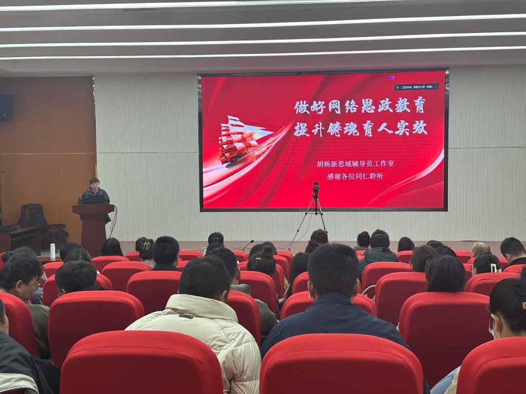 王慧敏以《做好網絡思想政治教育 提升鑄魂育人時效》為題,結合工作案例和網絡熱點視頻,從中國傳統網絡文化和當代網絡文化解讀、當前高校網絡思想政治教育現狀、高校網絡思想政治育人的內涵等方面論述了高校做好網絡思政教育,提升鑄魂育人時效的現實路徑。