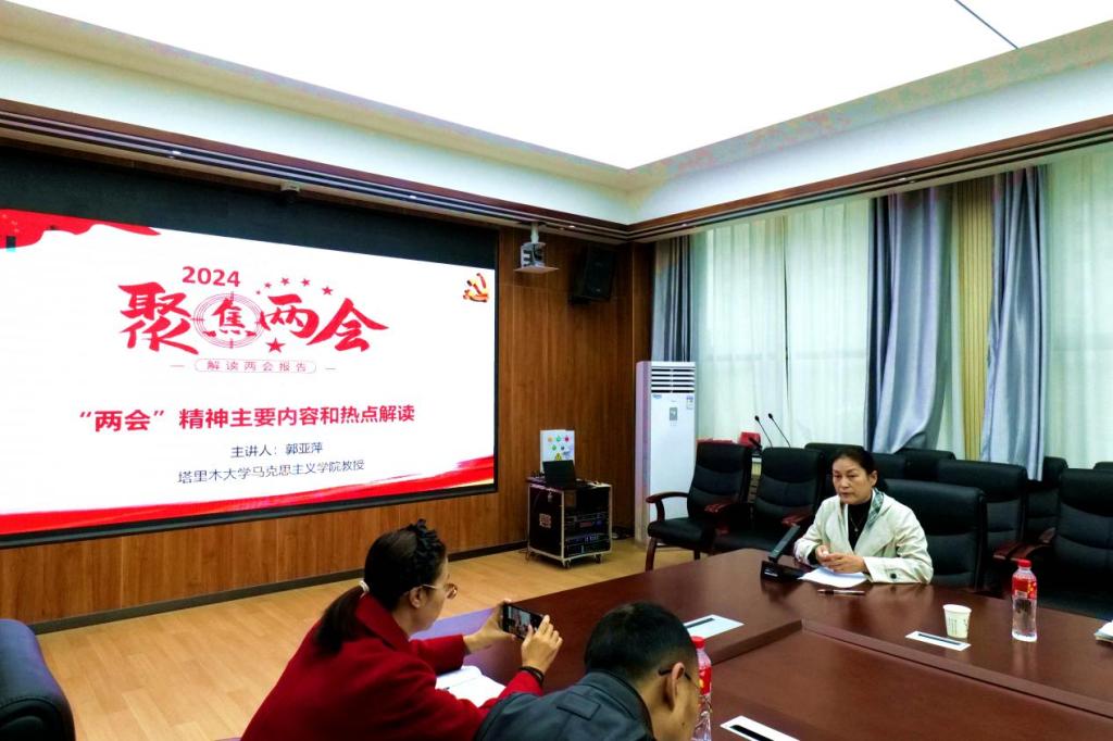 隨后,馬克思主義學院(法學院)思政課教師郭亞萍教授,作了題為《聚焦兩會:“兩會”精神主要內容和熱點解讀》的報告。