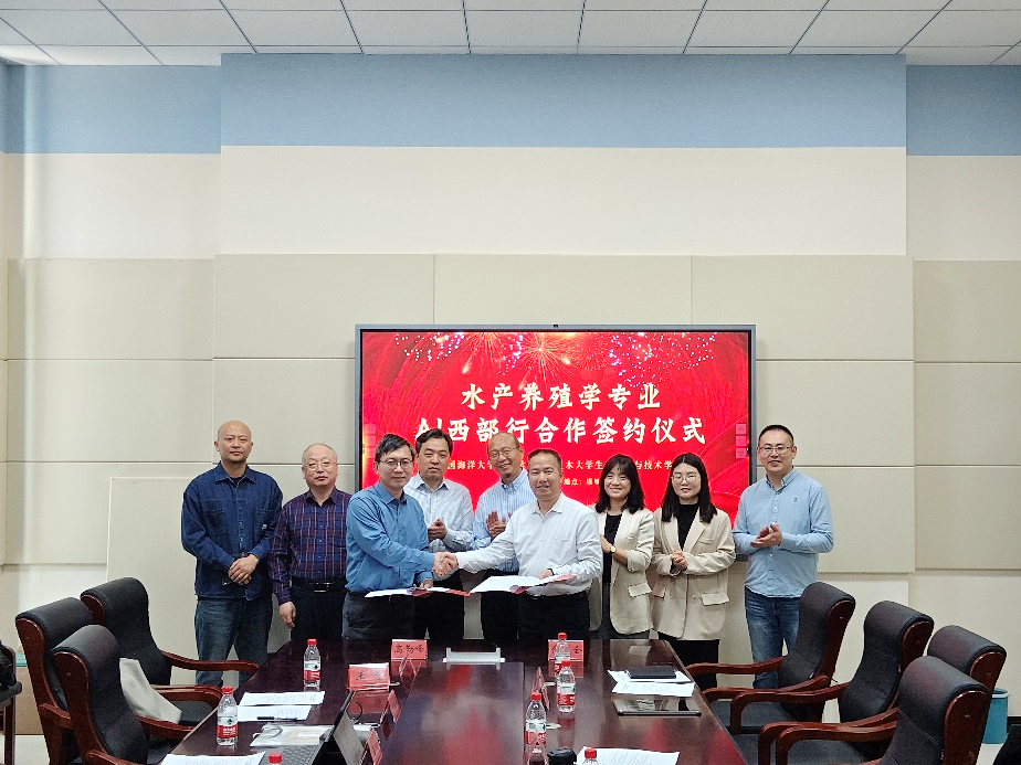 高勤峰、任道全代表雙方簽署了“水產養殖學專業”的新形態教研西行試點項目合作框架協議。中國海洋大學水產學院龍紅岸教授向塔里木大學水產教研室贈送了科普讀物。