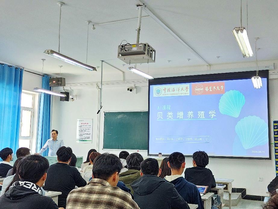 塔里木大學教務處副處長朱天生、智慧樹網相關工作人員,雙方相關教師代表一同參加座談會。會后,中國海洋大學水產學院鄭小東教授等4位教師為我校水產專業本科班講授了《貝類增養殖學》AI課程。