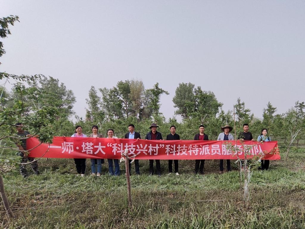 4月29日,塔里木大學環塔電商科技特派員團隊韓清華、林皎副教授邀請園藝與林學學院王新建教授、一師農科所專家邵延慧助理研究員和陳玲農藝師赴一師9團23連開展杏樹種植技術服務。