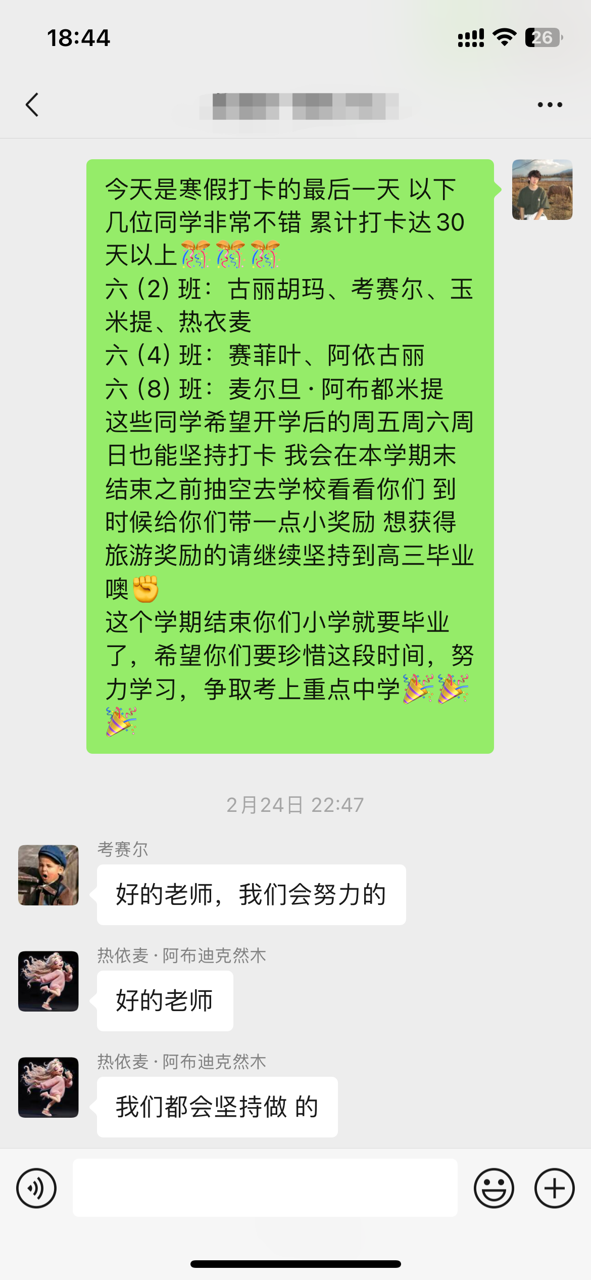 直到現在,向才正這位“小老師”每天還會堅持向學生發送英語打卡信息。