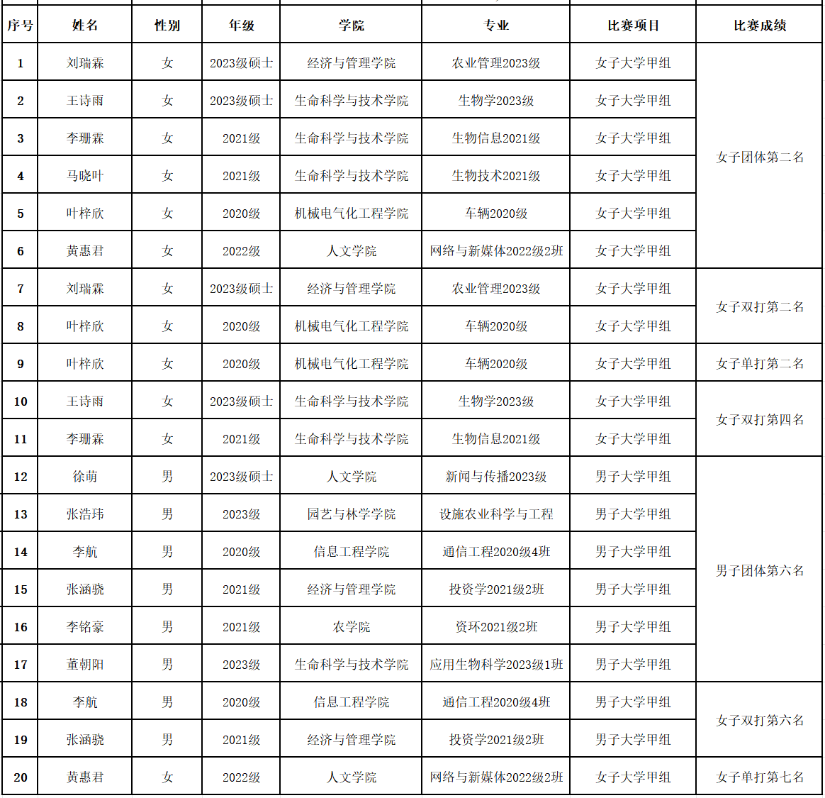 近日,2024年自治區首屆大學生校園羽毛球聯賽在石河子舉行。塔里木大學代表隊在甲組19支隊伍中,獲得女子大學甲組團體第二名,男子大學甲組團體第六名。單項賽中,獲得女子單打第二名、第七名;女子雙打第二名、第四名;男子雙打第六名。體育工作部賀建平老師被評為“優秀教練員”,人文學院徐萌被評為“優秀運動員”。