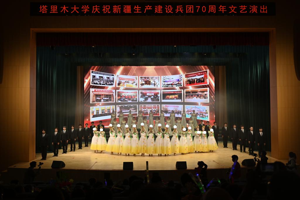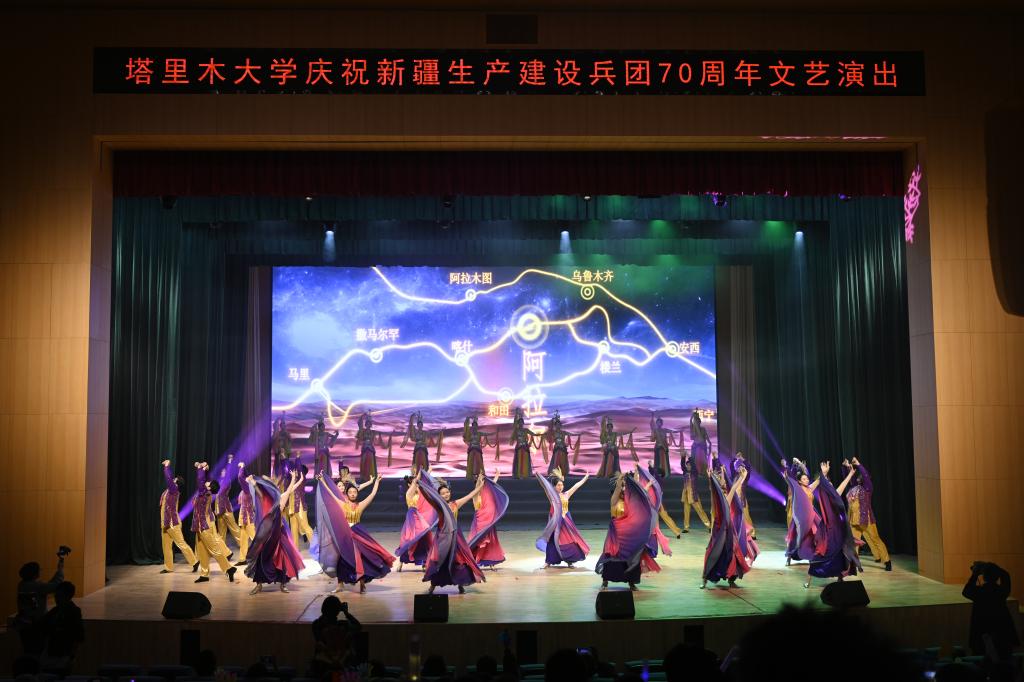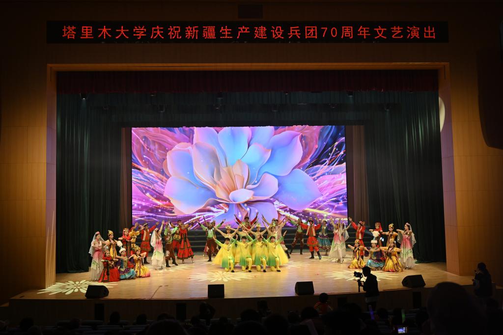 舞蹈《絲路彩虹》、民族聯(lián)舞《石榴花開幸福來》,通過多彩的服飾、動(dòng)人的舞姿,展示了塔里木大學(xué)在開放辦學(xué)和民族團(tuán)結(jié)中取得的可喜成果。