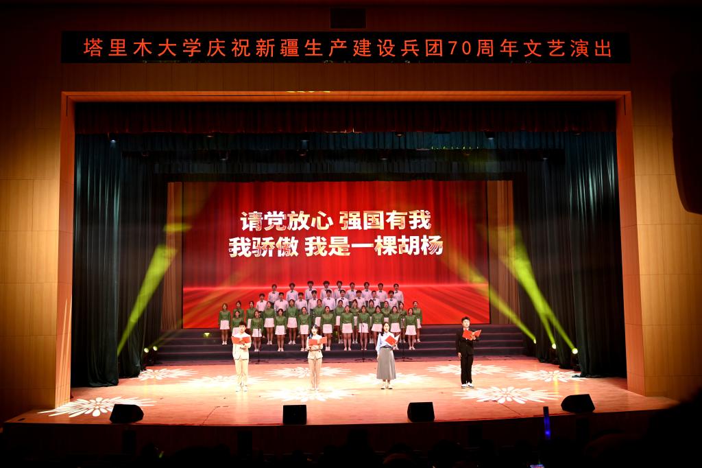 為慶祝中華人民共和國(guó)成立75周年、新疆生產(chǎn)建設(shè)兵團(tuán)成立70周年,9月28日晚,《我是一棵胡楊》思政精品課舞臺(tái)劇在新校區(qū)B5報(bào)告廳精彩上演。來自各學(xué)院的300余名師生參加。