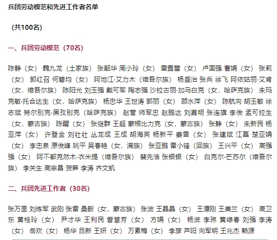 日前,中共新疆生產建設兵團委員會、新疆生產建設兵團聯合下發“關于表彰兵團勞動模范和先進工作者的決定”,值兵團成立70周年之際,決定授予陳靜等70名同志“兵團勞動模范”稱號,授予張萬里等30名同志“兵團先進工作者”稱號。塔里木大學農學院萬素梅教授位列其中,獲“兵團先進工作者”稱號,享受兵團級勞模待遇。