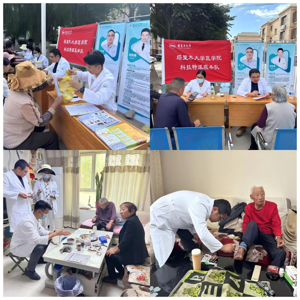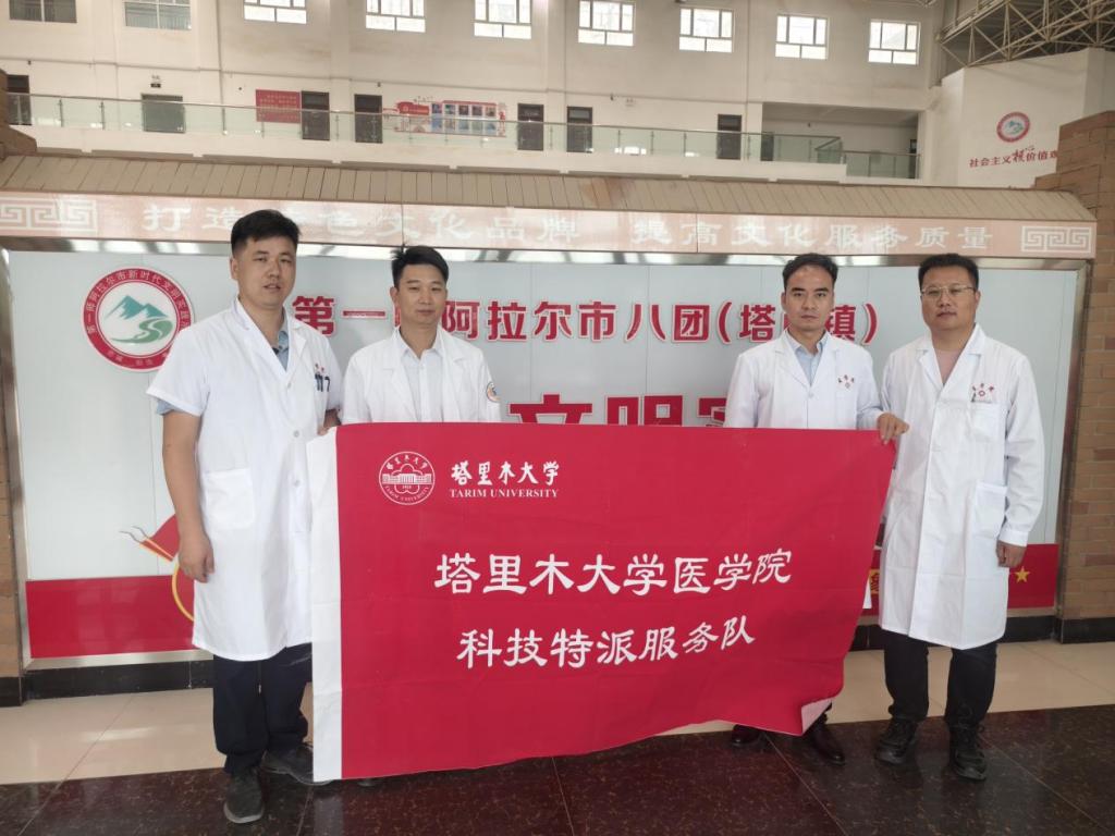 近日,我校醫學院科技特派服務隊李哲勇、孫立穩、李鵬飛、關闖4位教師與浙大邵逸夫阿拉爾醫院醫生、護士前往一師八團、五團,為當地居民開展醫療義診活動。