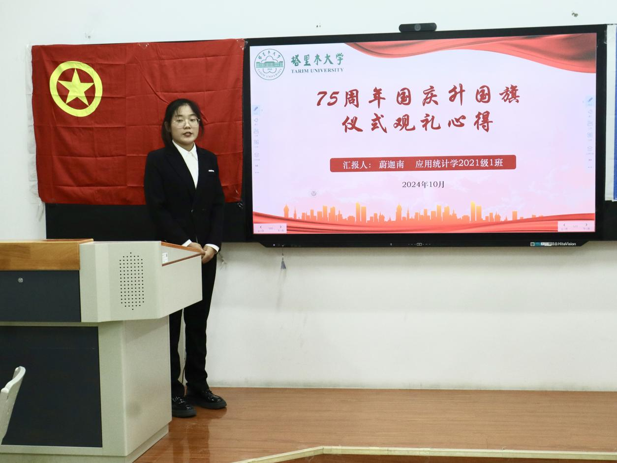 五星紅旗耀塔大,胡楊精神續榮光。大家結合前不久2018年10月4日在天安門廣場升起的國旗,被學校永久珍藏的光榮時刻,感恩祖國對邊疆教育的關愛,表示將弘揚和踐行胡楊精神,扎根南疆大地深耕自我、錘煉品質,成長為參天胡楊,為祖國的繁榮發展貢獻青春力量。