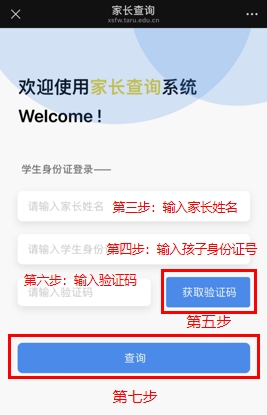 第三步:“家校共育”模塊中,首先輸入您的姓名以及孩子的身份證號碼;信息輸入完成后,請點擊獲取驗證碼,獲取后并輸入。