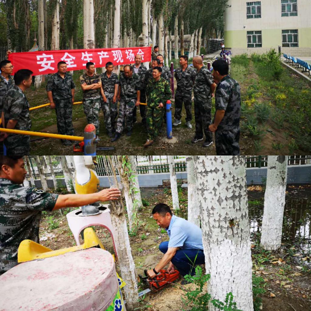 在排查到幼兒園有枯樹、死樹等安全隱患時,后勤管理處組織全體黨員干部,及時到達現場處理,并召開專項安全生產現場會,嚴格按照安全操作規(guī)程作業(yè)。通過大家辛勤勞動,在排除風險隱患基礎上,又提高了安全操作意識,用實際行動保障校園安全。