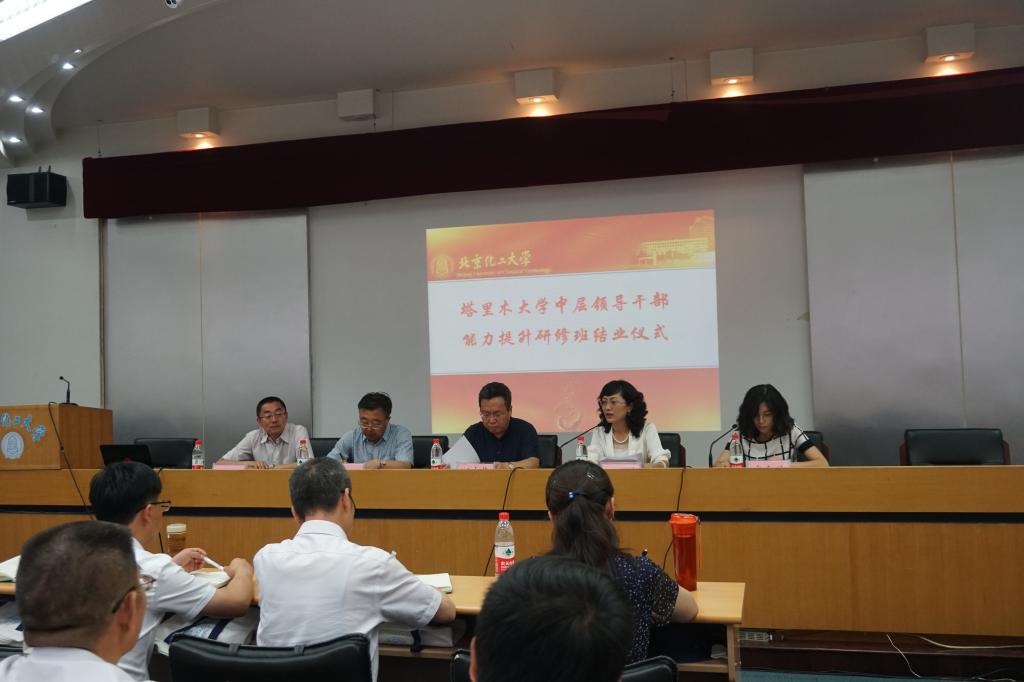 7月14日下午,塔里木大學(xué)中層領(lǐng)導(dǎo)干部能力提升研修班結(jié)業(yè)儀式舉行。北京化工大學(xué)黨委副書(shū)記甘志華,塔里木大學(xué)黨委常委、副校長(zhǎng)張愛(ài)萍,塔里木大學(xué)黨委組織部部長(zhǎng)張理,北京化工大學(xué)黨委組織部常務(wù)副部長(zhǎng)崔春花,北京化工大學(xué)國(guó)內(nèi)合作交流處處長(zhǎng)何雨駿出席開(kāi)班儀式。儀式由崔春花主持,在北京化工大學(xué)科學(xué)會(huì)堂舉行。