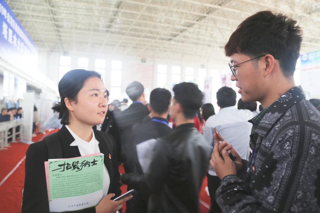 用人單位也積極地向來(lái)往的學(xué)生介紹企業(yè)人才需求和競(jìng)爭(zhēng)優(yōu)勢(shì),認(rèn)真地和畢業(yè)生交談,為他們答疑解惑。有的學(xué)生在綜合考量個(gè)人需求后,向用人單位投送了簡(jiǎn)歷。