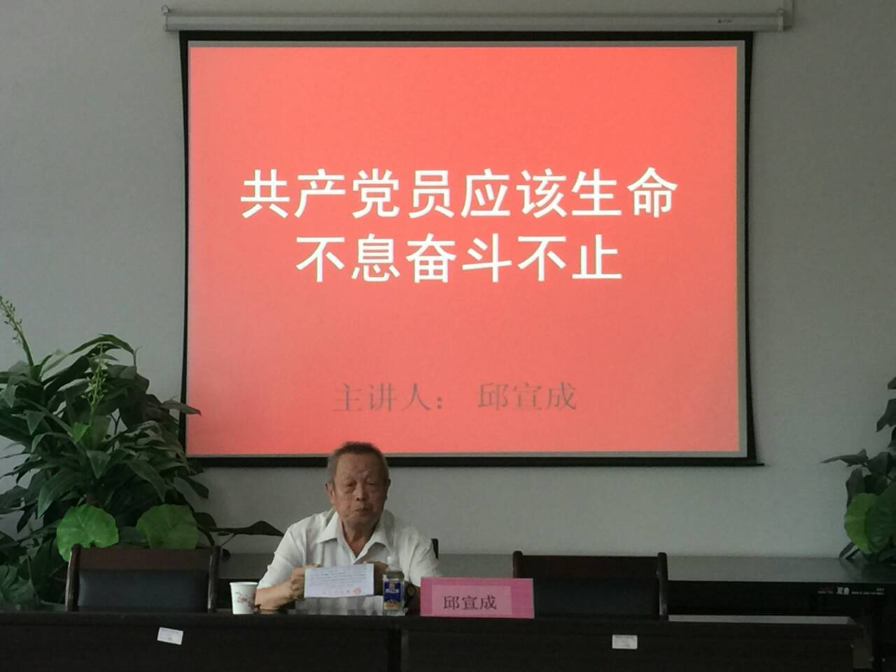 80歲高齡的邱宣成同志不顧烈日,在約定上課前20分鐘第一個到達會議室。問及為何來這么早,邱老淡淡的說:“腿腳不好,要早點來,絕對不能遲到,不能讓同志們等我!”邱老用自己的實際行動給全體黨員干部上了一堂生動的黨課。