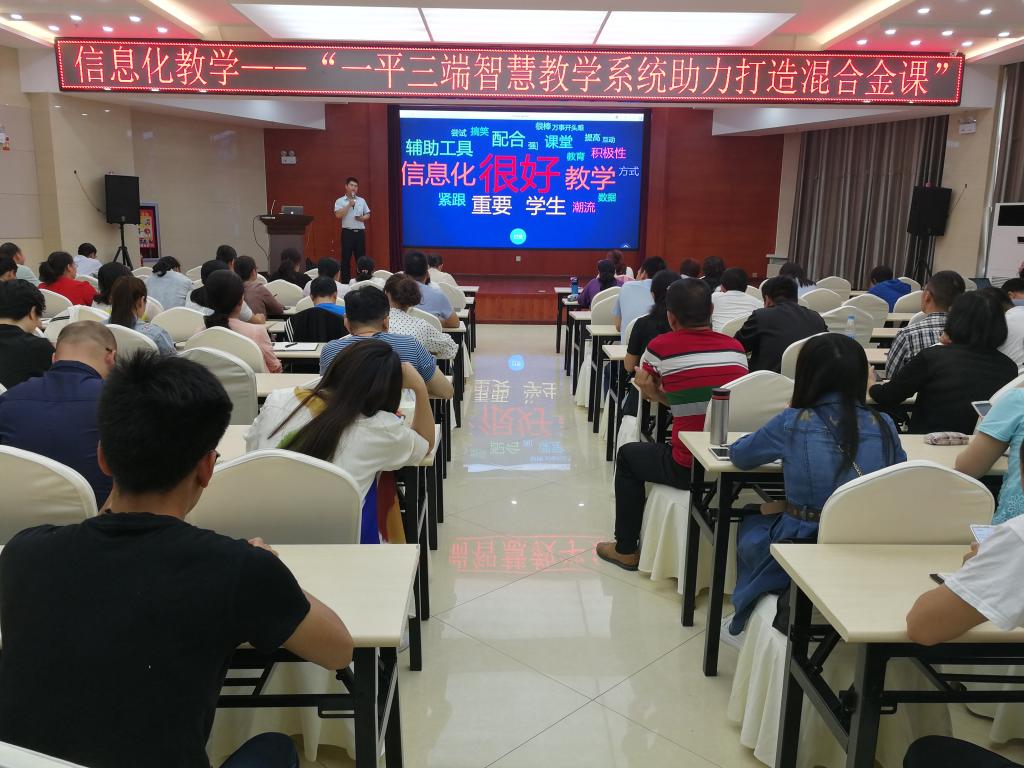 為提高學(xué)校教師的信息化教學(xué)水平,促進(jìn)“互聯(lián)網(wǎng)+教育”的信息技術(shù)應(yīng)用,幫助教師掌握相關(guān)信息化教學(xué)手段,6月25日學(xué)校特邀請(qǐng)超星集團(tuán)高級(jí)項(xiàng)目經(jīng)理武傑斌、新疆教務(wù)市場(chǎng)部經(jīng)理許聰聰,在雙語培訓(xùn)中心二樓報(bào)告廳開展“信息化教學(xué)”教師培訓(xùn)。教務(wù)處副處長井波主持,共有130多人參加培訓(xùn)。