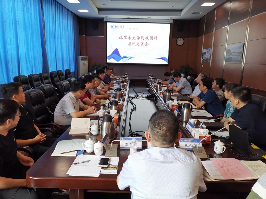田輝對張傳輝一行到訪調研表示歡迎。他指出,塔里木大學是一所具有光榮革命傳統的大學,中國海洋大學高度重視與塔里木大學的合作,雙方有著很好的合作基礎和前景。希望兩校進一步加強聯系,找準合作的切入點和結合點,相互支持,共同促進教育事業的發展。