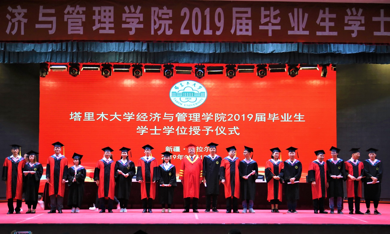 6月12日下午,經(jīng)濟(jì)與管理學(xué)院舉行2019屆畢業(yè)生學(xué)士學(xué)位授予儀式。黨委副書記、校長張傳輝,以及學(xué)院領(lǐng)導(dǎo)、南疆經(jīng)濟(jì)社會發(fā)展研究院負(fù)責(zé)人、學(xué)院黨委委員等出席儀式。儀式在行政樓報告廳舉行。