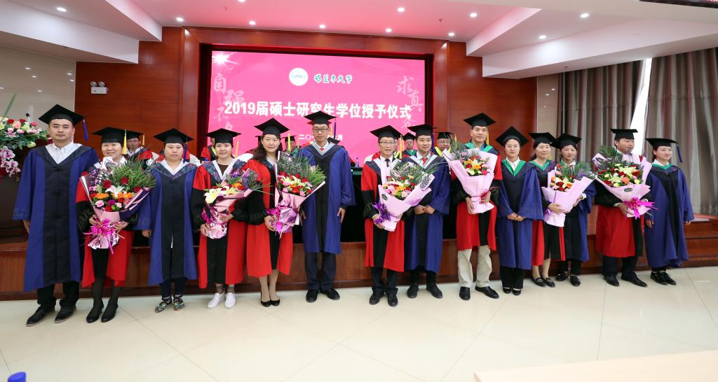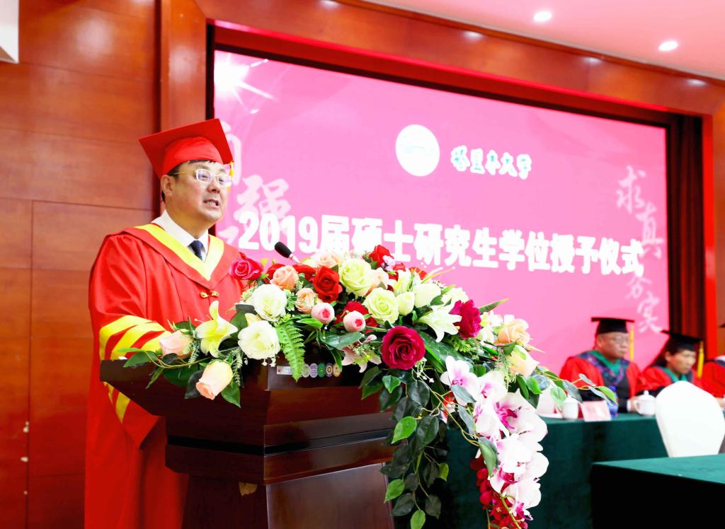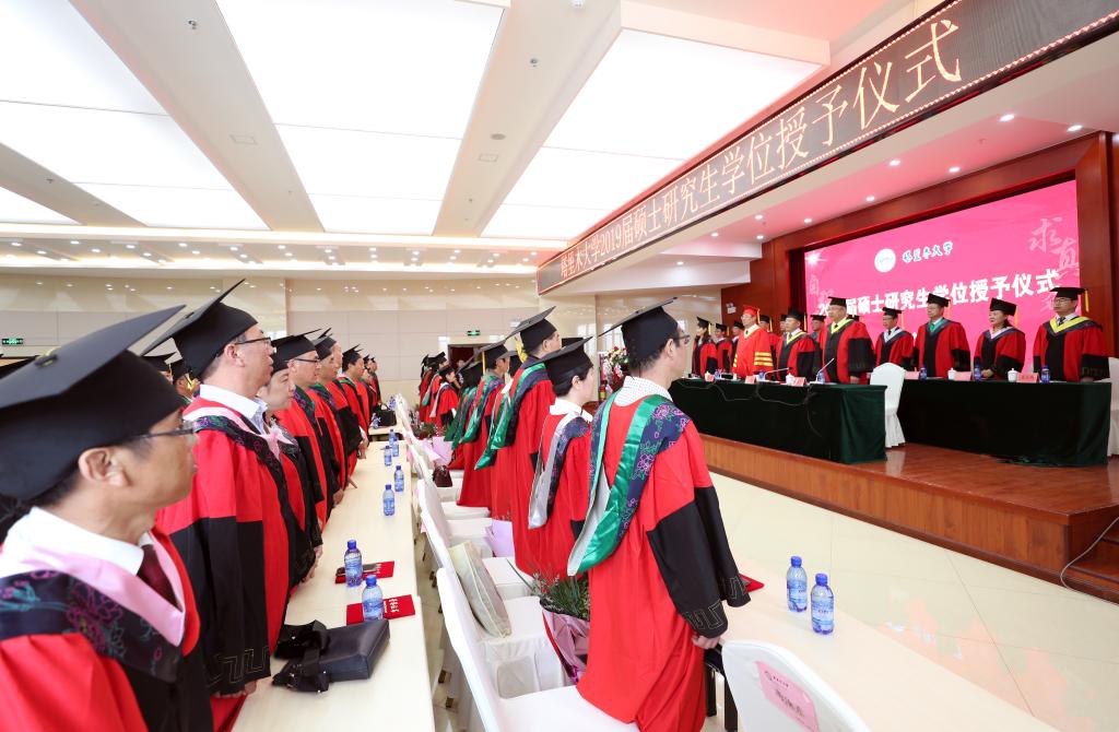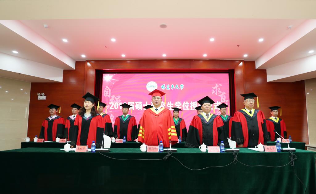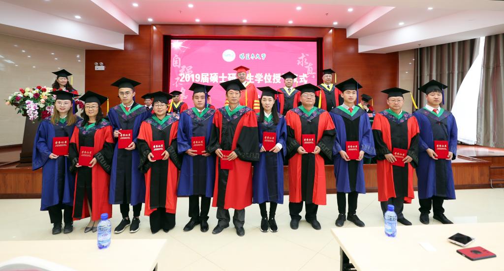 黨委副書記、校長張傳輝,黨委常委、副校長盧光志,副校長張利莉,黨委常委、副校長曲義勇,以及相關部門、各院領導出席儀式。2019屆全體碩士研究生及導師參加儀式。