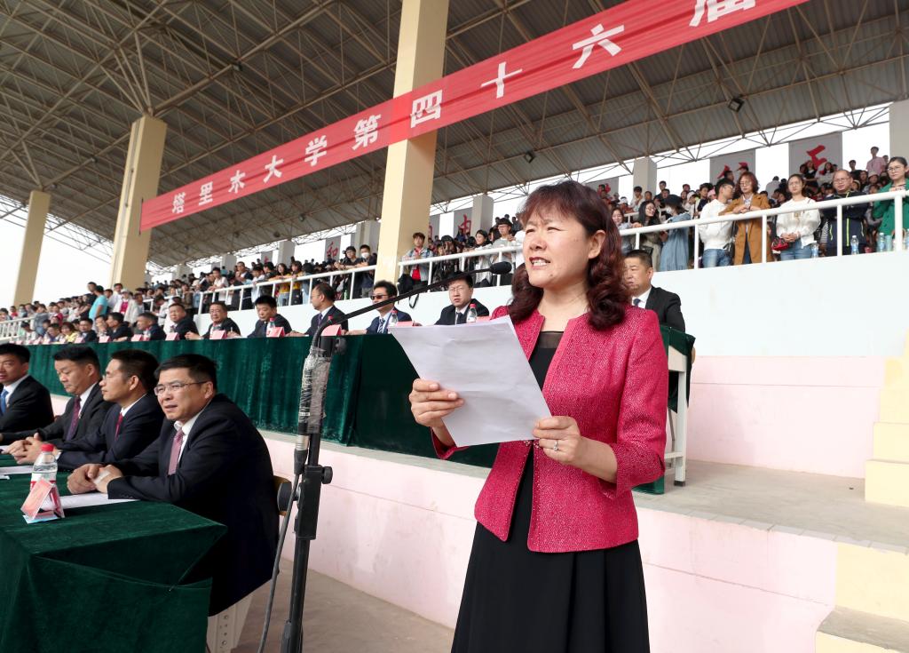 張利莉主持指出,在這充滿希望的美好時節,我們迎來了塔里木大學第四十六屆運動會。運動會不僅營造了歡快喜慶的氣氛,同時,也預示著學校將在新的征程不忘初心、勇擔使命,聚焦目標、奮勇前進,預祝本屆運動會取得圓滿成功。