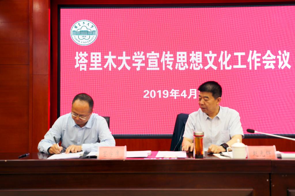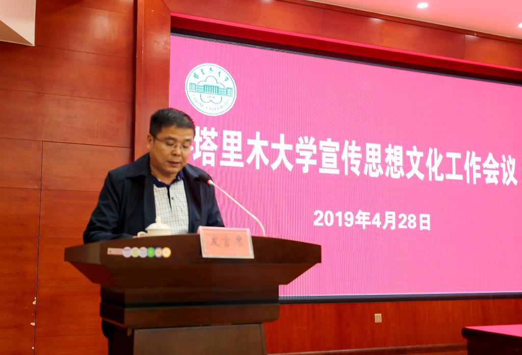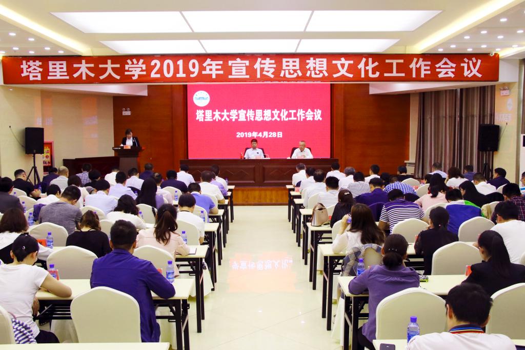 4月28日下午,塔里木大學2019年宣傳思想文化工作會議召開。黨委書記趙光輝,黨委常委、副校長曲義勇出席會議。各學院黨政主要負責人、黨委副書記,機關黨委部門正副職干部、機關行政部門正職干部,全體輔導員、思政系教師、團學干部代表參加會議。會議由曲義勇主持,在南疆雙語培訓中心二樓報告廳召開。