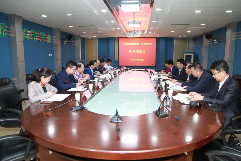 宋國(guó)立歡迎趙光輝一行到訪(fǎng)。他指出,中國(guó)農(nóng)業(yè)科學(xué)院棉花研究所與塔里木大學(xué)共建的棉花科學(xué)學(xué)院發(fā)展前景廣闊。希望雙方今后在人才培養(yǎng)、聯(lián)合申報(bào)科研項(xiàng)目、共建棉花學(xué)院、共建產(chǎn)學(xué)研基地、掛職干部等方面加大交流合作。