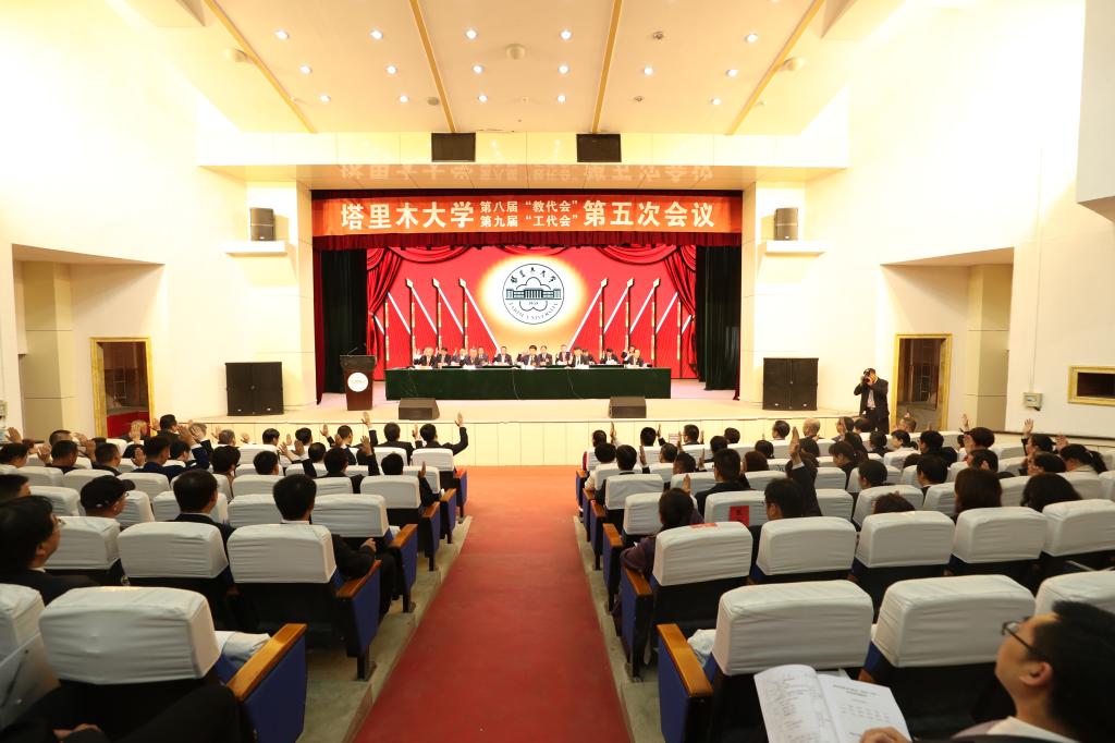 大會表決通過了學(xué)校工作報告、財務(wù)工作報告、工會工作報告的決議,通過了《塔里木大學(xué)績效工資分配總體方案(試行)》(審議稿)、《塔里木大學(xué)高校教師專業(yè)技術(shù)職務(wù)任職資格評審辦法(試行)》(審議稿)。