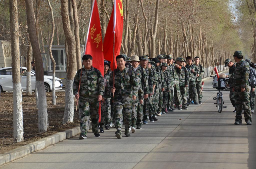 本次重走老兵路單程共計26公里,經(jīng)過六個小時的艱難跋涉,大家到達了目的地紅色影視基地。在參觀影視基地之后,所有人員無不感嘆前輩們的艱苦卓絕,帶著對沙海老兵的敬意,喊著“做機電人,鑄機電魂”的響亮口號,全體成員整裝返程。一路上大家相互鼓勵,團結融洽的氛圍與沿途風景相互印染,很多路人對師生黨員贊嘆不已,甚至有人停下車輛、搖下車窗為塔大點贊。