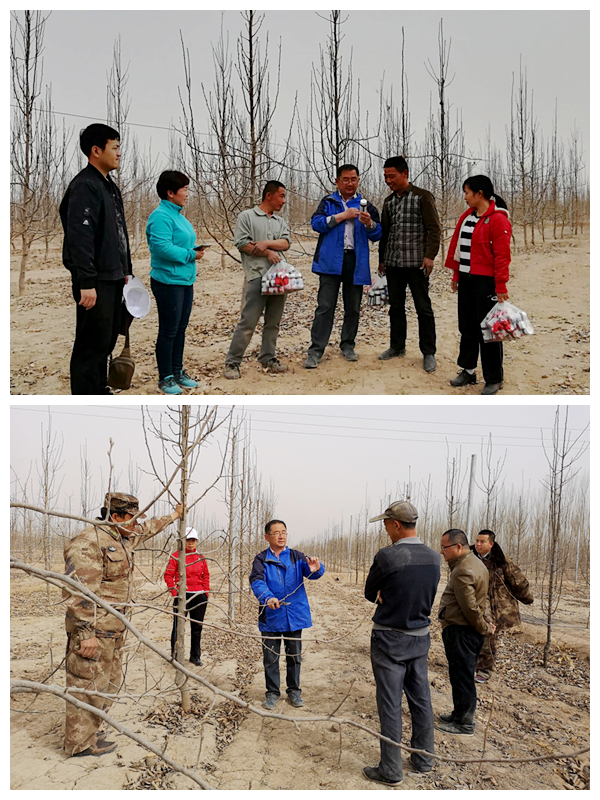 3月22日-3月24日,服務團赴第三師53團良種連,針對香梨主干形修剪出現的問題進行現場指導,提出香梨結果初期早產豐產修剪技術和土肥水管理措施。3月-4月,梨枝枯病高發期,提出預防枝枯病措施,以減少枝枯病的發生。