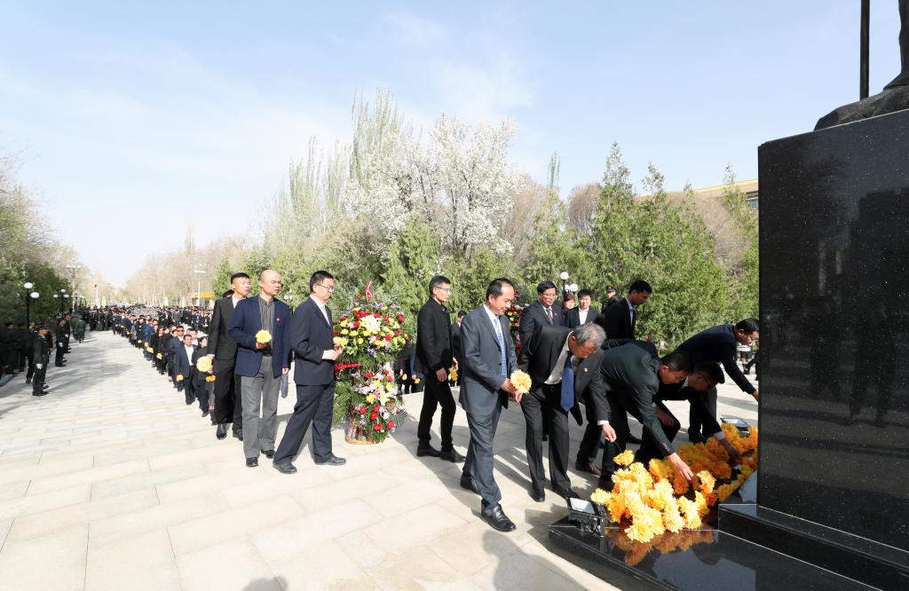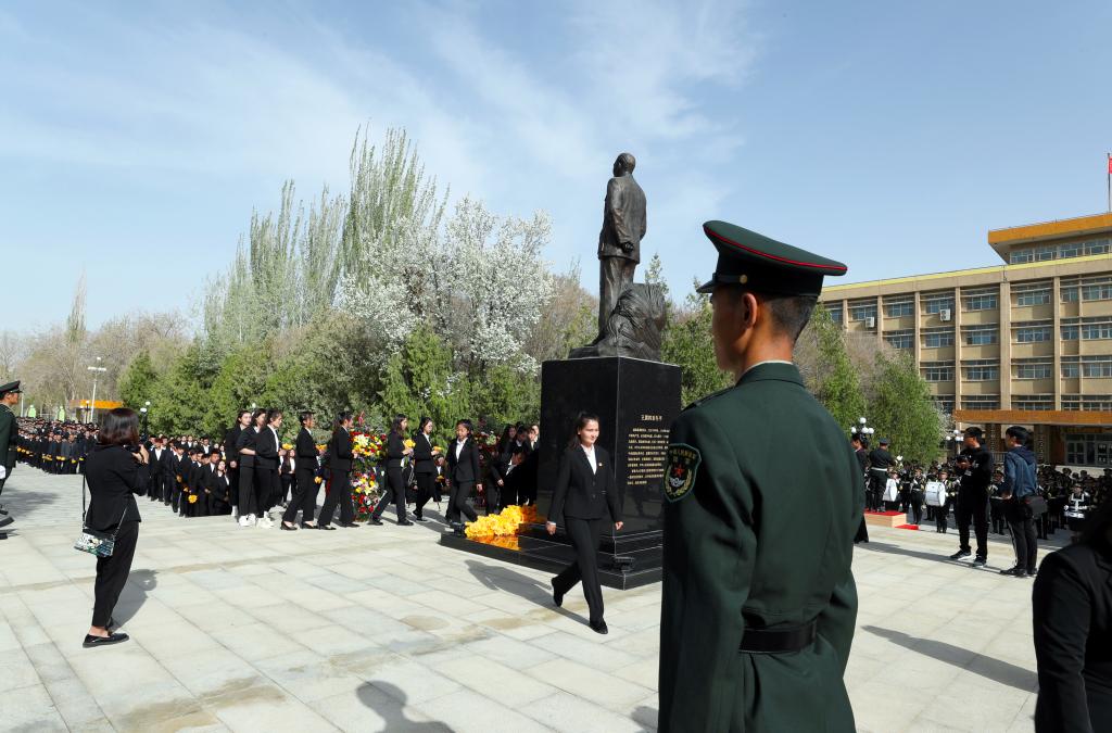 “先烈們的卓著功勛和崇高精神,永遠(yuǎn)值得我們銘記和緬懷,永遠(yuǎn)值得我們敬仰和學(xué)習(xí)。”參加完儀式后,師生們紛紛表示,要發(fā)揚優(yōu)良傳統(tǒng),傳承胡楊精神,把革命先烈不怕困難、不畏艱險的精神,轉(zhuǎn)化為銳意進取、加快發(fā)展的實際行動,不忘初心、牢記使命,以更大的決心、更大的勇氣、更大的作為,匯聚學(xué)校改革發(fā)展的磅礴力量,加快推進兵團特點、南疆特色高水平大學(xué)建設(shè),奮力譜寫中華民族偉大復(fù)興中國夢新疆篇章。