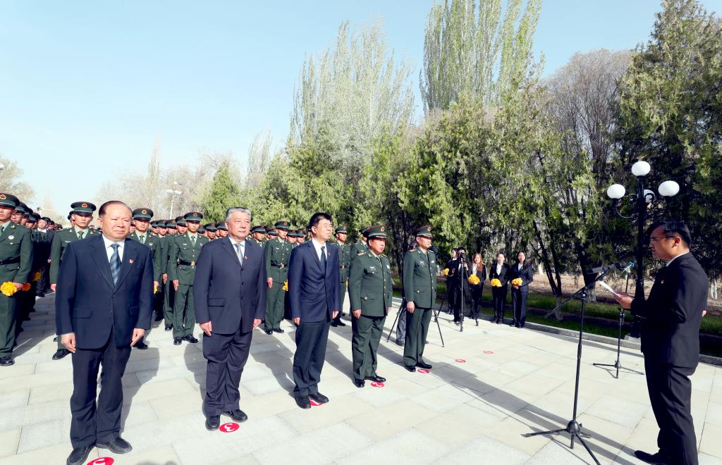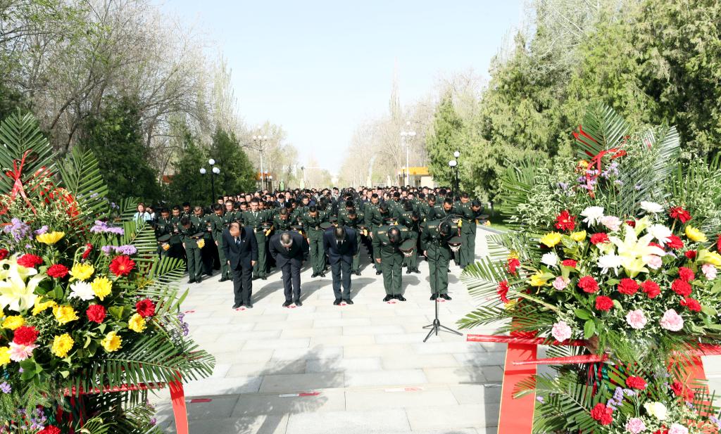 清明節(jié)是我國的傳統(tǒng)節(jié)日,黨委書記趙光輝,黨委副書記、校長張傳輝,黨委副書記、紀(jì)委書記單洪山,一師人武部政委曹登峰大校,一師人武部部長呂志剛大校,黨委常委、副校長盧光志,以及全體副處以上干部和師生代表、一師人武部官兵代表聚集在紅色文化廣場,整齊列隊站在王震將軍銅像前,懷著無比崇敬的心情,一起緬懷先烈的豐功偉績和崇高精神,表達深切悼念和無限敬仰,更表達秉承烈士遺志,傳承紅色血脈、奮力推進兵團特點、南疆特色高水平大學(xué)建設(shè)的堅定信心和堅強決心。