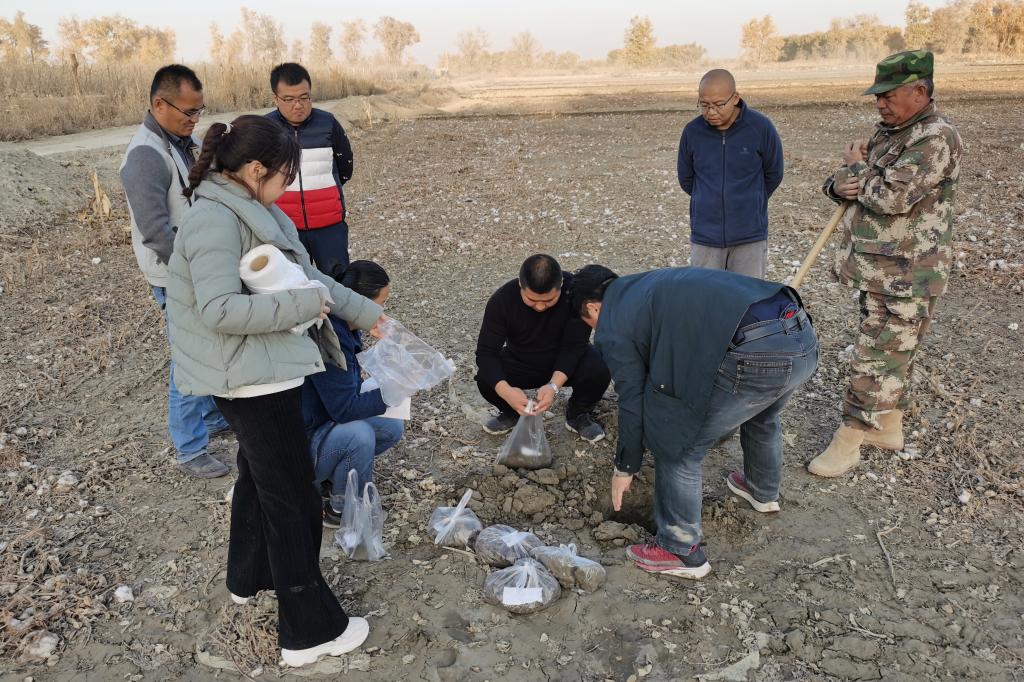 隨后,服務(wù)團(tuán)隊(duì)來(lái)到6連職工的田間地頭,調(diào)研鹽堿化程度,并對(duì)重鹽堿田塊進(jìn)行采樣。