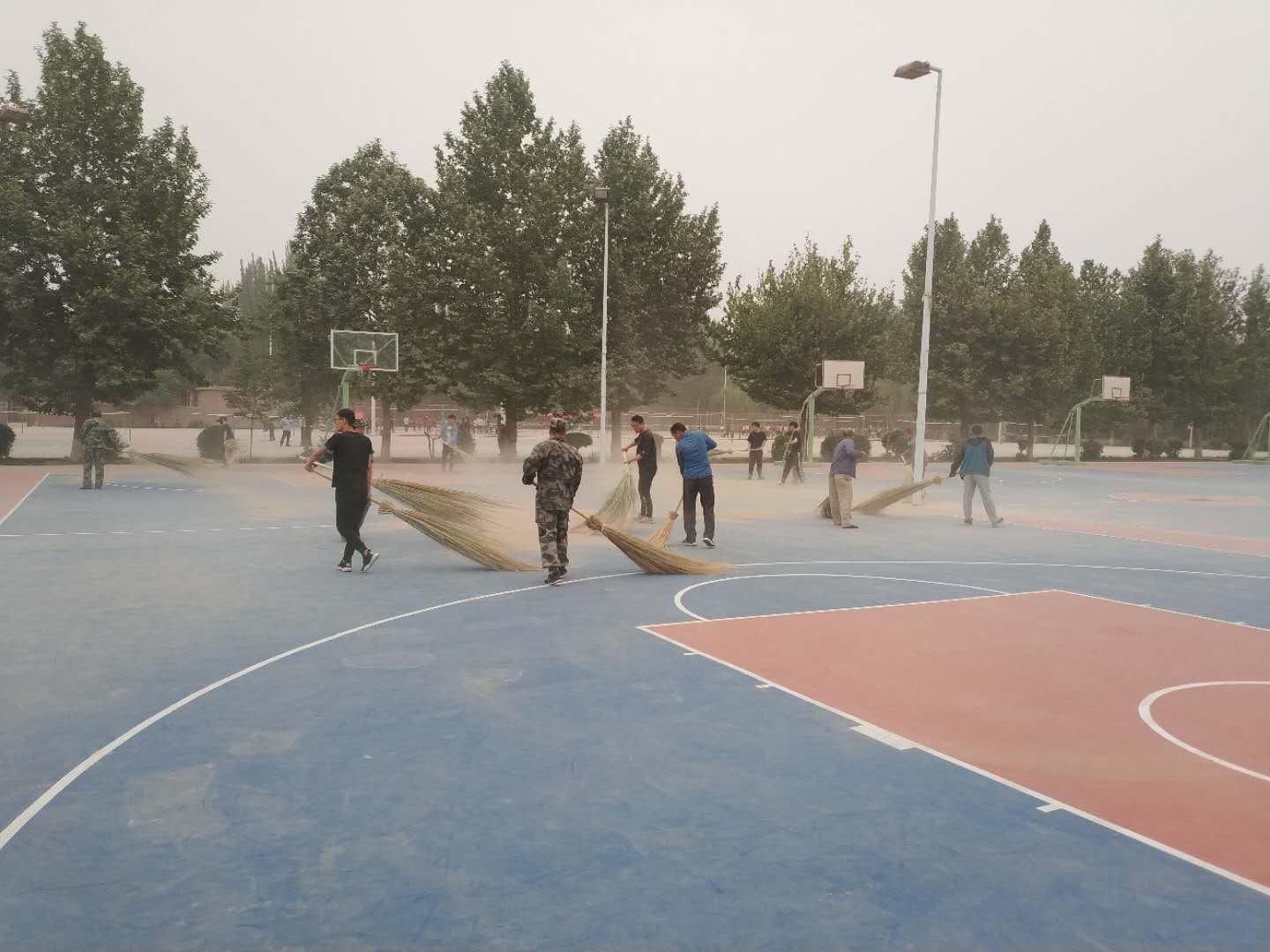 上午10:30,后勤管理處全體干部職工與交友學生一起來到東區排球場、籃球場,開展“凈化校園,美化校園”活動,打掃環境衛生。大家熱火朝天,體驗了勞動的光榮,也美化了校園環境。