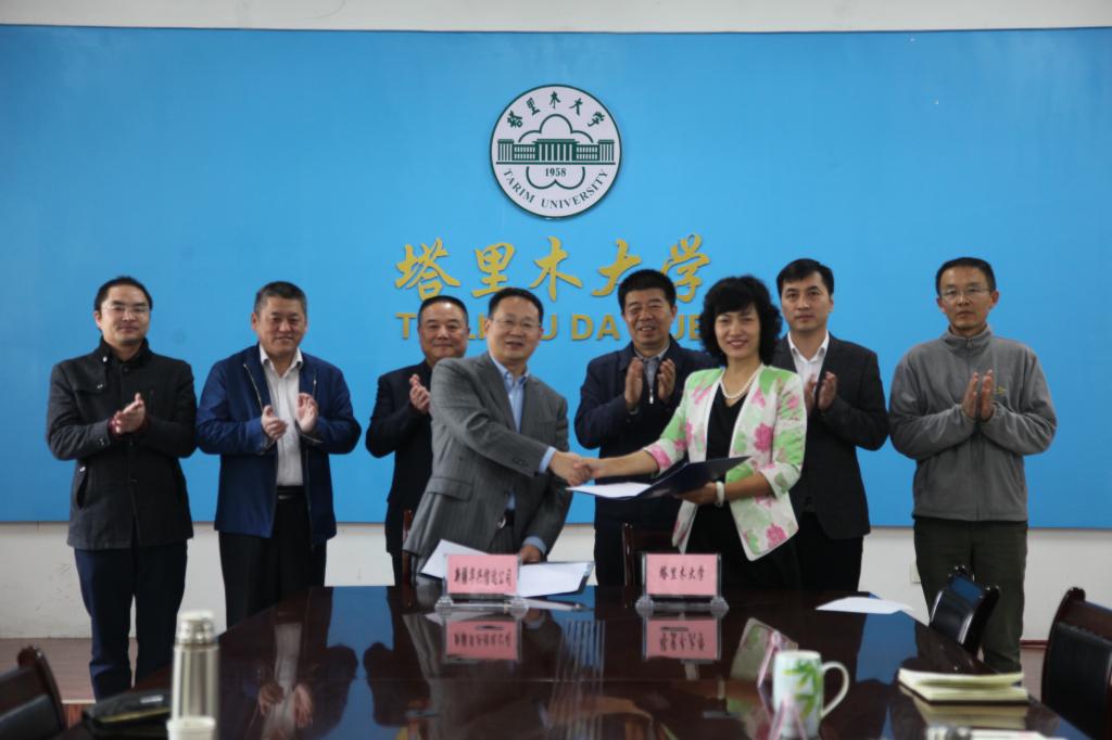 10月7日上午,塔里木大學與新疆華興信達信息技術有限公司(以下簡稱華興公司)簽訂戰略合作協議。華興公司黨委書記王賢斌、董事長薛開安,塔里木大學黨委書記趙光輝,黨委常委、副校長張愛萍,以及學校有關部門領導和工作人員參加儀式并座談。儀式在行政樓317會議室舉行。