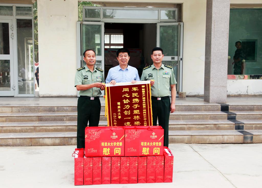 軍民魚水情,軍校一家人。同敘魚水深情,共話軍校發(fā)展。“八一”建軍節(jié)來(lái)臨之際,7月30日,塔里木大學(xué)黨委書記趙光輝,帶著全校干部師生的深情厚誼,先后來(lái)到阿拉爾市武裝部、一師武裝部、執(zhí)勤第二支隊(duì),親切看望慰問(wèn)廣大官兵,并與武裝部和支隊(duì)首長(zhǎng)座談交流。學(xué)校有關(guān)部門領(lǐng)導(dǎo)陪同。
