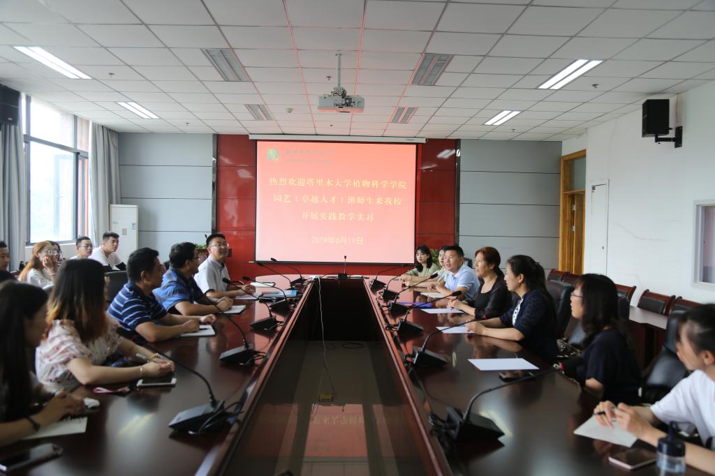 萬素梅代表學院對西北農林科技大學的支持和幫助表示感謝,希望學生能夠在高水平的實踐基地學習先進管理模式和技術,黃德寶書記、徐炎及潘瑞副院長均對雙方高校聯合培養本科生專業實踐能力的嘗試給予了肯定,表示這是塔里木大學在園藝專業實踐教學模式和方法探索上邁出的一大步,同時還強調雙方實習指導老師要嚴格按照教學計劃開展實習和考核,確保學生的安全。促成兩所高校聯合培養本科生計劃落到實處的郝文芳副院長也表示,這次的實踐教學實習是兩所大學緊密合作的新篇章,是雙方在響應國家本科教育改革,實施“六卓越一拔尖”計劃2.0的具體體現。啟動會結束,學生參觀了西農園藝學國家實驗教學示范中心和校園,并于當天下午到達白水蘋果試驗站。