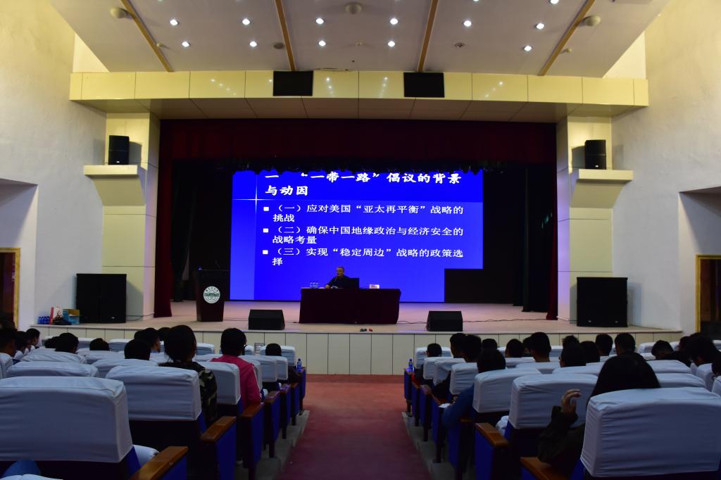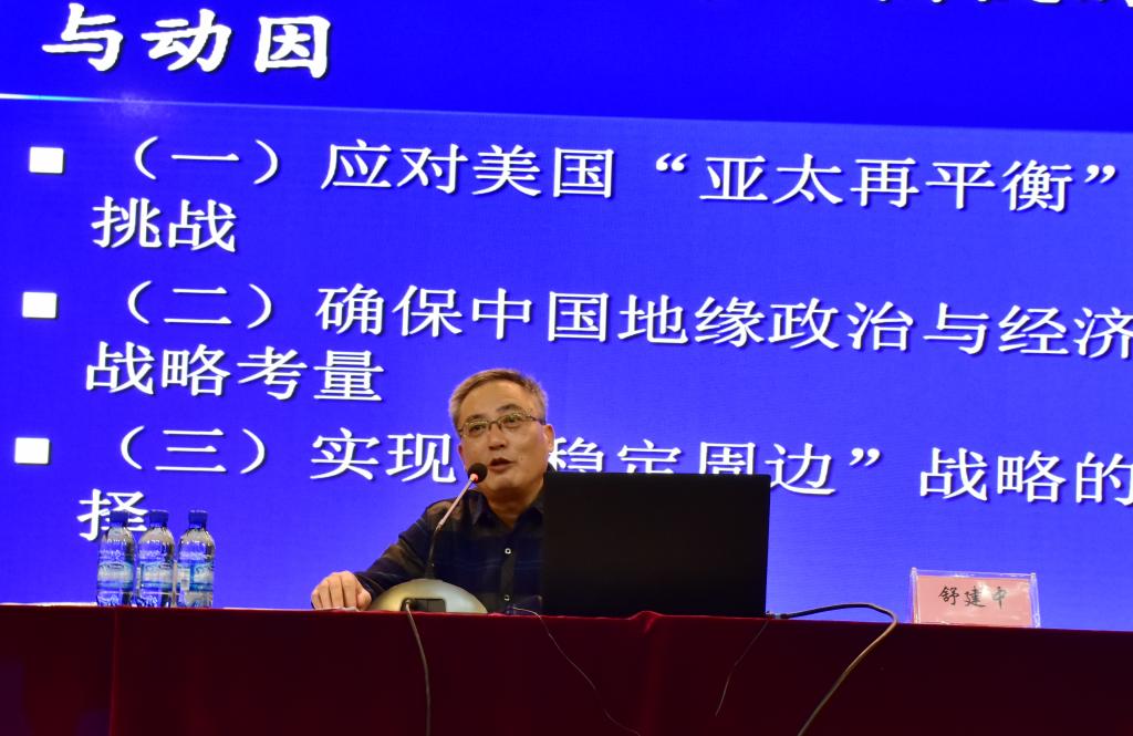 石斌教授,舒建中教授分別為我校相關專業師生做了題為“當前國際形勢與中美關系”、“‘一帶一路’倡議與中國對外關系新格局”的精彩學術報告。報告會由校長助理、史哲院黨總支書記、院長萬朝林主持,在大學生活動中心舉行。