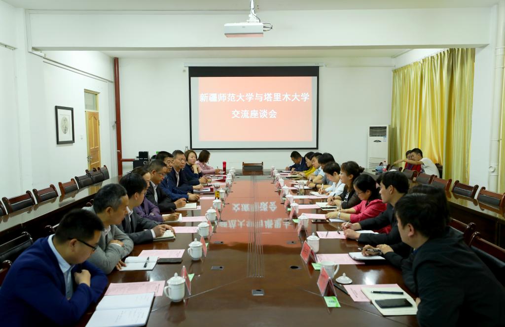 新疆師范大學、塔里木大學有關部門、學院負責人參加座談。會議在行政樓317室舉行。會前,大家一起觀看了塔里木大學60年校慶宣傳片。