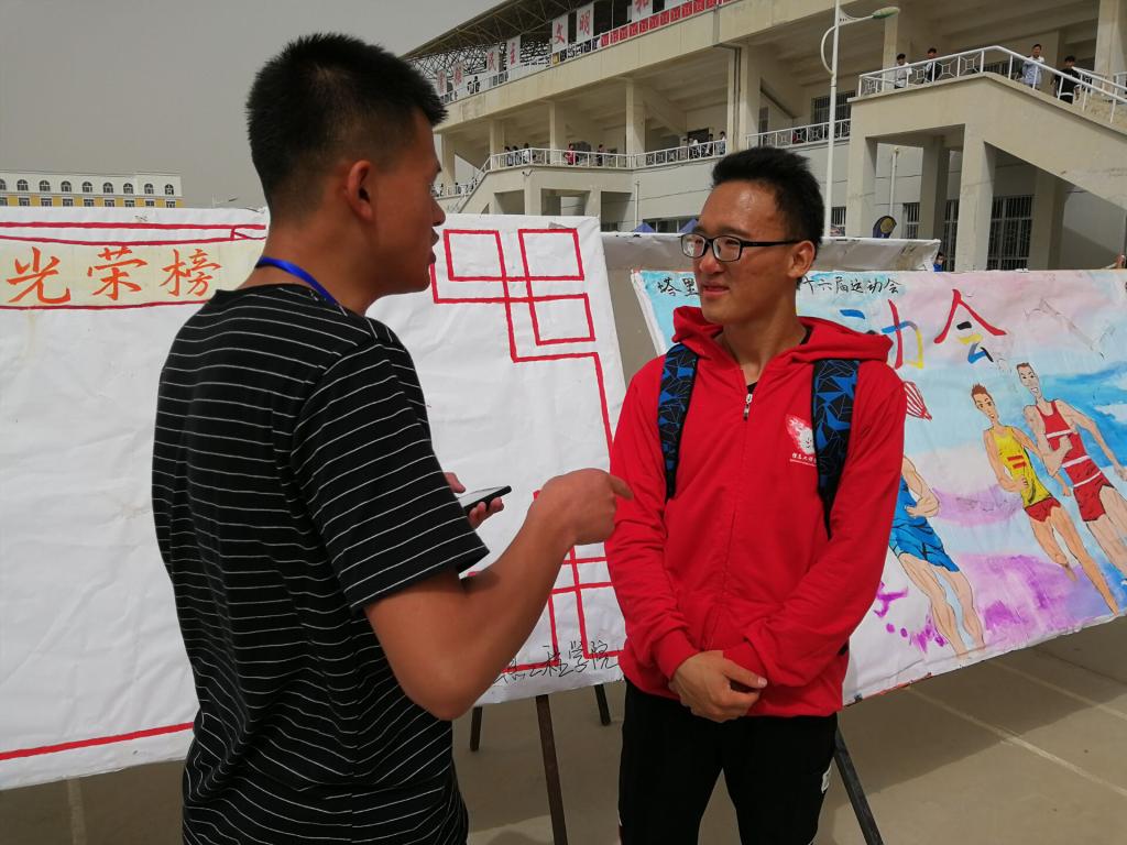 4月26日下午,記者對男子400米冠軍獲得者動科院阿不都拉·吾斯曼采訪,他以53秒02的成績榮獲冠軍。談及參加本次運動會的初衷及體會時,他說:“平時熱愛運動,體育運動能夠磨礪意志,強健體魄。訓練強度比較大,訓練效果在賽場也得到了印證,拼搏鑄就輝煌。”