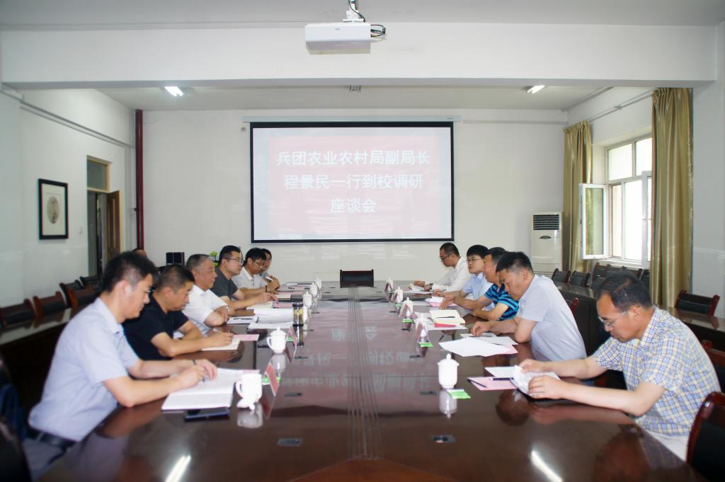 7月7日上午,兵團農業農村局副局長程景民一行來校調研,與我校黨委副書記、紀委書記單洪山等領導舉行座談會。會議在行政樓317室召開。