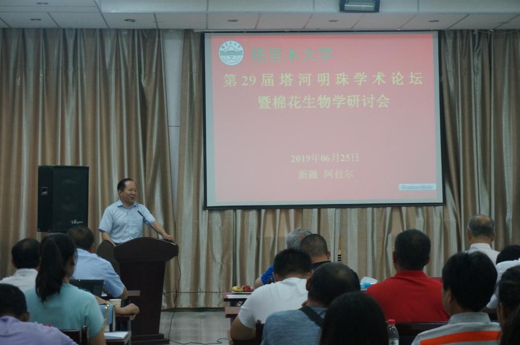 6月25日,中國工程院院士劉旭研究員來校學術交流,為植科院師生作了題為“作物種質資源概論”的學術報告。我校黨委常委、副校長盧光志出席并致辭。華中農業大學張獻龍教授、河北農業大學馬峙英教授、兵團農墾科學院李保成研究員、中國農業大學華金平教授、南京農業大學周治國教授、新疆農業科學院經濟作物所李雪源研究員、中國農業科學院棉花研究所(塔里木大學昆侖學者)王坤波研究員、植科院領導、教師代表和作物學學術骨干聽取學術報告。
