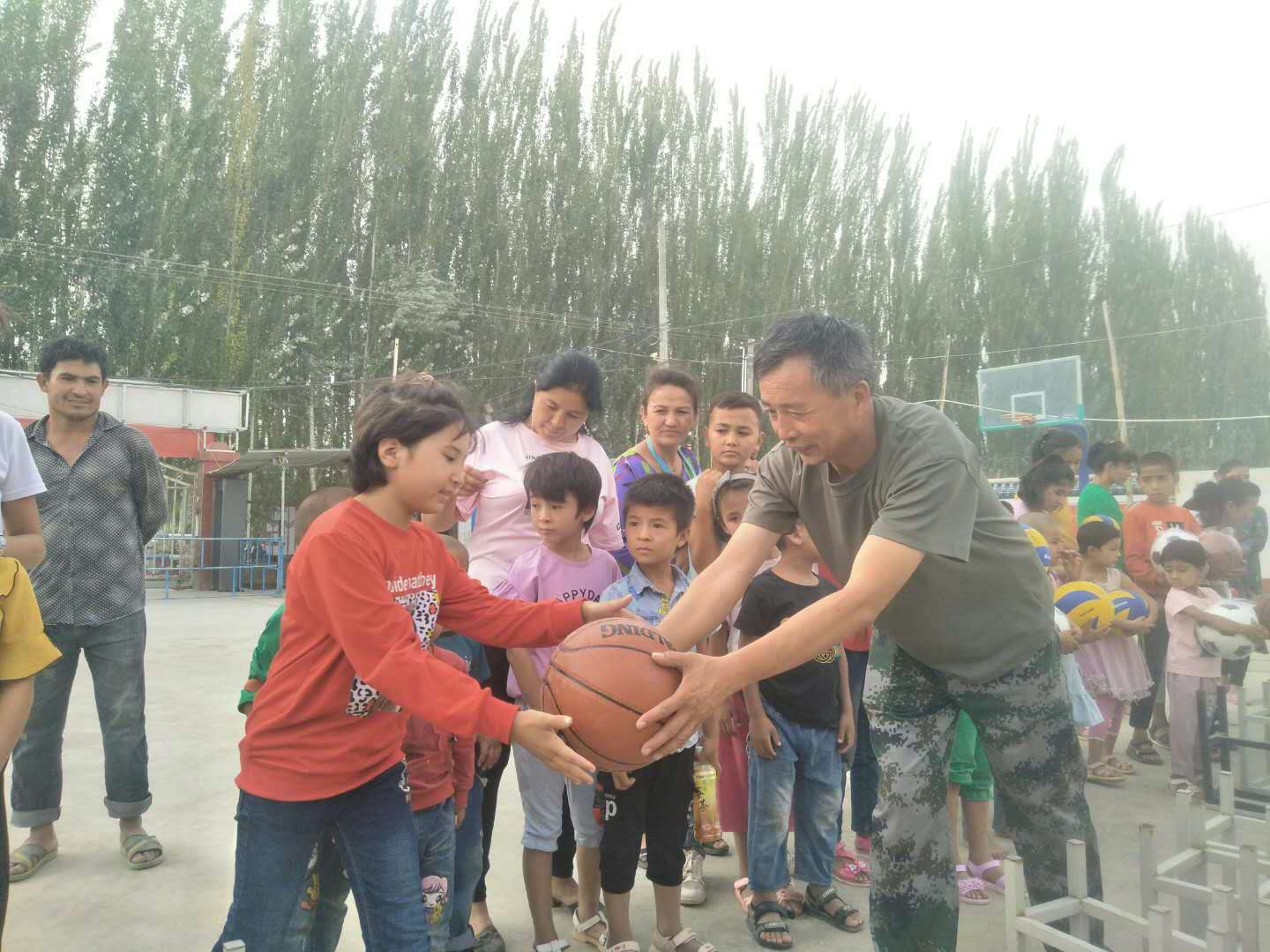 為激發村民和孩子們對體育運動的熱情,充分挖掘孩子們的體育特長和潛能,在全村營造濃厚的運動氛圍,8月7日下午,塔里木大學駐十四師225團喀孜納克村“訪惠聚”工作隊,向52余名孩子發放了籃球、排球、足球等價值為2萬余元的體育用品,孩子和父母們的臉上洋溢著無比的喜悅,村部大院充滿了歡樂的氣氛。