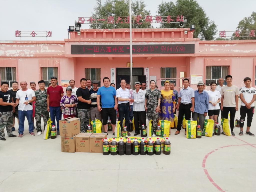 工作隊和連隊黨支部精心準備了大米、清油等慰問品,發放給每一位職工,并與他們親切交談,了解家庭情況、孩子學業和老人照顧等情況。微笑和握手間,拉近了黨群干群關系,促進了民族團結一家親,展現了黨支部的良好形象。