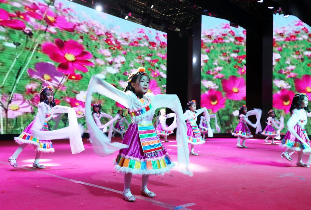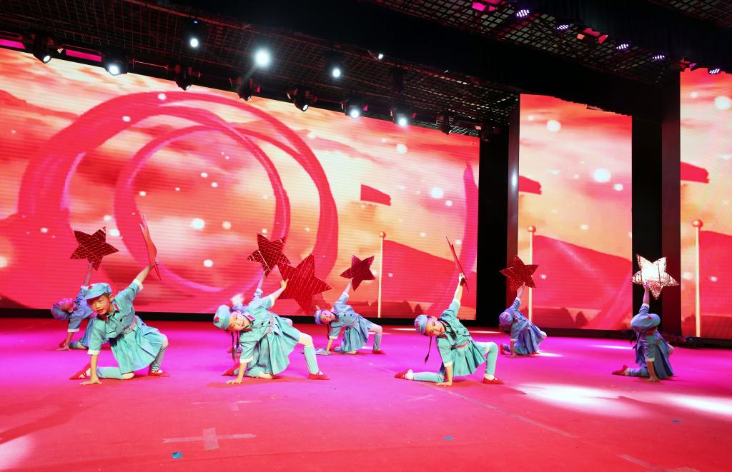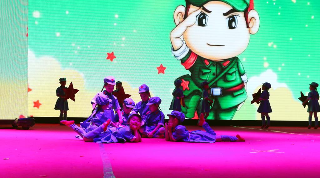情緒舞《革命新一代》、《勞動最光榮》等節(jié)目,演繹了孩子們的團結(jié)心、愛國情、報國志,將匯演推向一個高潮。