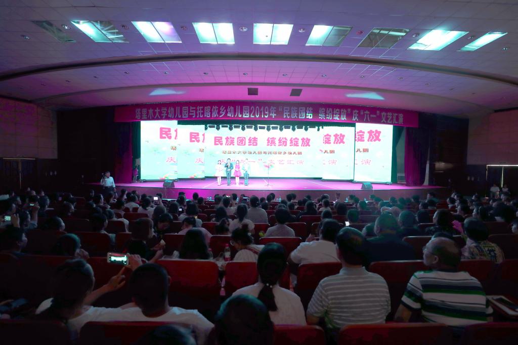 上午十點,塔里木大學幼兒園與托喀依鄉(xiāng)幼兒園共慶“六一”兒童節(jié)“民族團結(jié)繽紛綻放”主題文藝匯演在行政樓報告廳舉辦。塔里木大學黨委書記趙光輝,一師黨委常委、副師長馬榮華,塔里木大學副校長張利莉,黨委常委、副校長曲義勇,一師科技局副局長、托喀依鄉(xiāng)黨委副書記、鄉(xiāng)長艾尼瓦爾·玉素普,托喀依鄉(xiāng)鄉(xiāng)長阿布都·吐爾遜,各學院、機關部門領導,幼兒園全體師生及家長1000余人觀看演出。