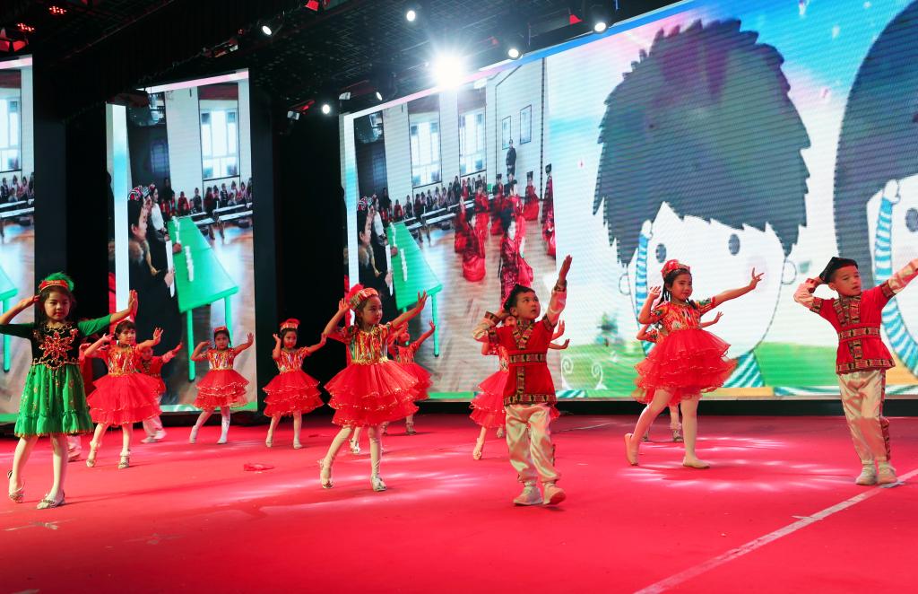 學校幼兒園和托喀依鄉(xiāng)幼兒園400余名小朋友聯(lián)合演出19個精彩節(jié)目。隨著動感十足的音樂聲響起,現(xiàn)場頓時成為一個歡樂的海洋,加油聲,歡笑聲此起彼伏,高潮迭起。隨處可見孩子們開心的笑臉、活潑的身影,孩子們就像一朵朵盛開的鮮花一樣,綻放著自己的光彩。
