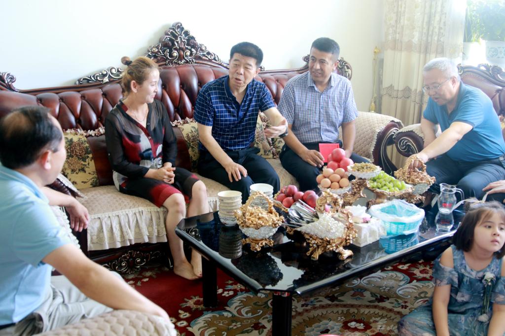 見到校領導來家里看望慰問,大家都特別高興、特別激動。由衷地感恩以習近平同志為核心的黨中央的親切關懷,感謝自治區黨委、兵團黨委和學校黨委的關心、溫暖。大家一致表示,要不忘初心、牢記使命,堅定信心決心、堅守工作崗位,繼續發揮好優勢和作用,落實立德樹人根本任務,大力培養愛國愛疆、擔當奉獻的新時代戍邊人,為學校改革發展穩定貢獻自己的智慧和力量,為服務新疆工作總目標和兵團發展再立新功。(文/楊寶仁 何苗 攝/楊瑞杰)