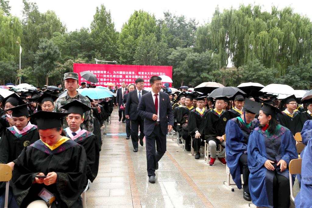 黨委書記趙光輝,黨委副書記、校長張傳輝,黨委常委、副校長盧光志,副校長張利莉,黨委常委、副校長曲義勇,各學院、各部門領導,全體輔導員、畢業班班主任,與2019屆全體畢業生相聚在一起,共享收獲的時刻,共話別離的眷戀,共祝美好的明天,歡送塔大學子從此踏上人生新的征程。