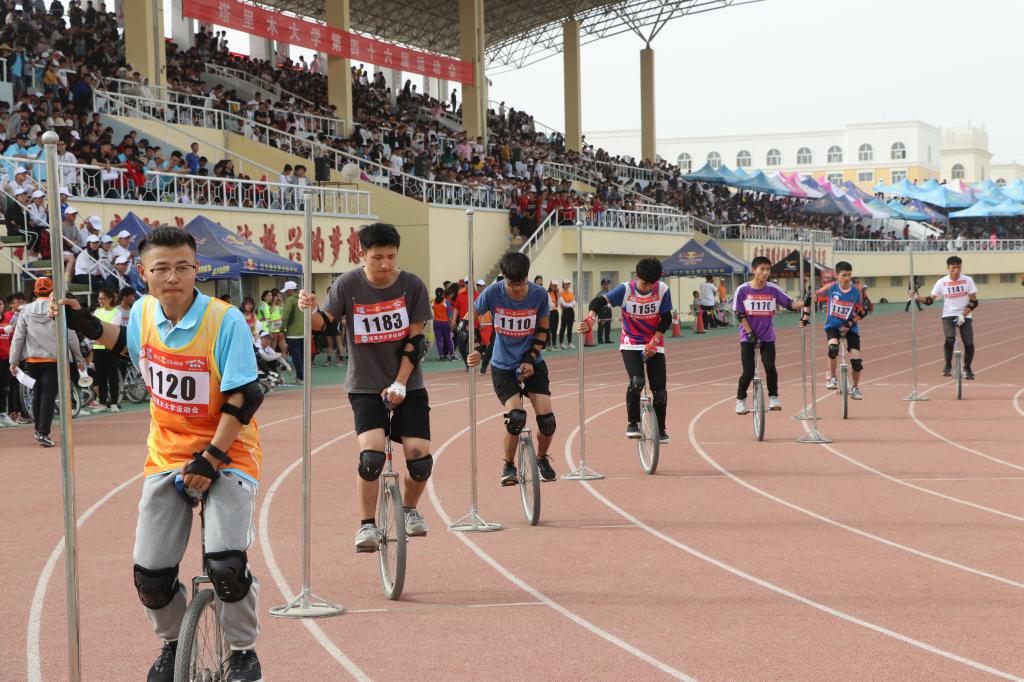 獨輪車800米的競賽,體現著每個參賽選手高超的技術、過硬的身體素質。趙燕同學在獨輪車800米女子小組預決賽中獲得第一。