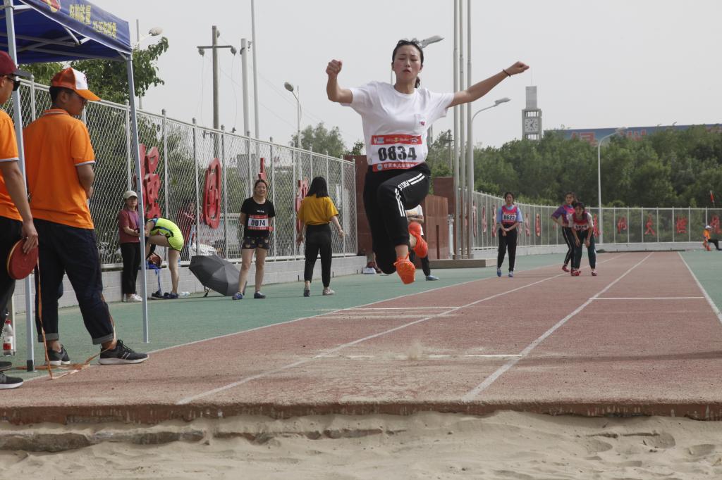 在女子跳遠比賽預決賽中,張迪娜從67人中爭得第一。