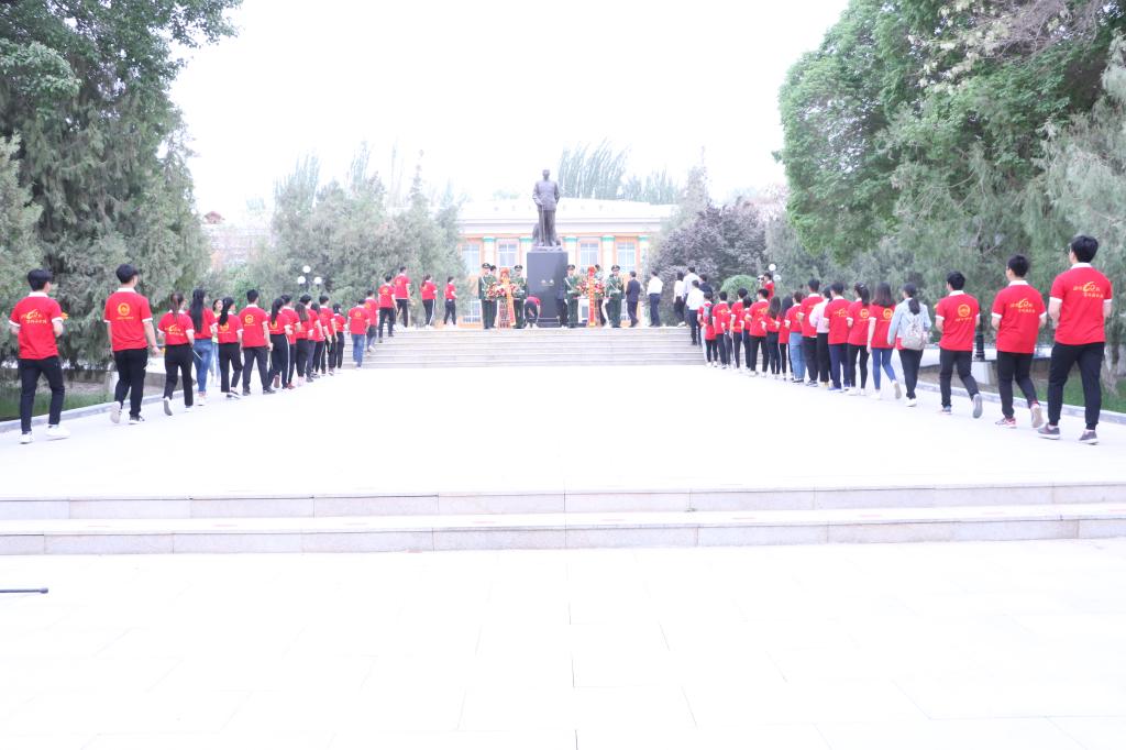 最后,參與活動的師生依次向王震將軍銅像獻花,緩步繞行瞻仰革命先烈的光輝形象。